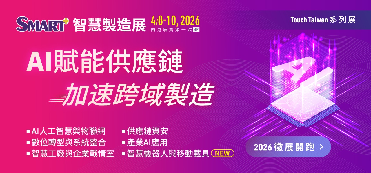 2026 SMART+智慧製造展 ,台灣上半年重要的智慧製造盛會,鏈結國內ICT產業、智慧製造、生產製造及系統整合供應鏈,共同展現其技術成果及解決方案,與跨域夥伴們一起打造合作生態系,展會將提供涵蓋多元創新技術、應用、解決方案及互動式體驗服務,共同打造交流與媒合展示服務平台,帶動台灣產業的數位轉型升級!
