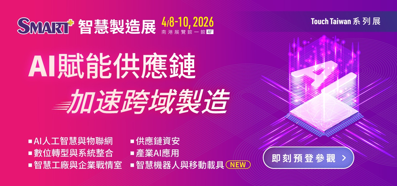 2026 SMART+智慧製造展 ,台灣上半年重要的智慧製造盛會,鏈結國內ICT產業、智慧製造、生產製造及系統整合供應鏈,共同展現其技術成果及解決方案,與跨域夥伴們一起打造合作生態系,展會將提供涵蓋多元創新技術、應用、解決方案及互動式體驗服務,共同打造交流與媒合展示服務平台,帶動台灣產業的數位轉型升級!